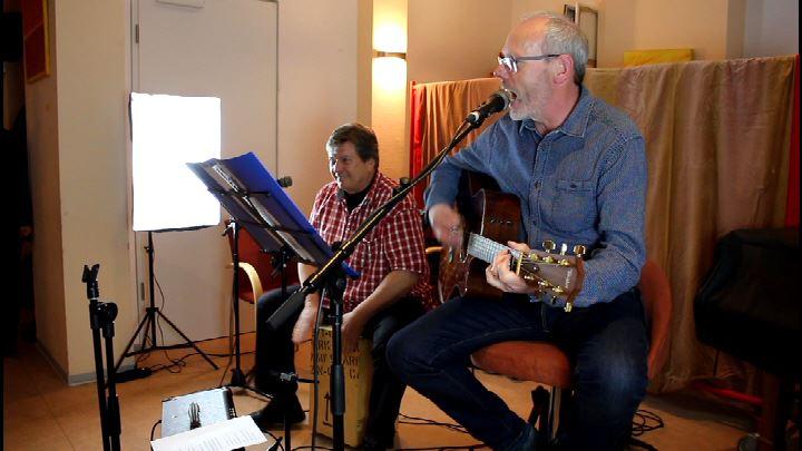 Michael und Ronald - zwei gesetzte Herren mit Gitarre und Cajon, kamen unterstützt durch Angelika mit noch einer Gitarre ins Klein Borsteler Gemeindehaus. Leider darf man dort kein Feuer machen, aber die Songs der 60er und 70er konnten ein bisschen Lagerfeuer-Feeling erzeugen. Plötzlich saßen alle im warmen Sand, ein Glas Wein in der Hand (ja, Bier ging auch) und lauschten der Musik.